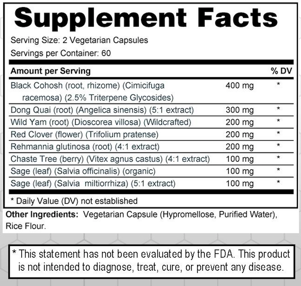 Wild Yam + Red Clover (200 mg each) – Provide gentle phytonutrient support to promote comfort and ease through transitional phases.